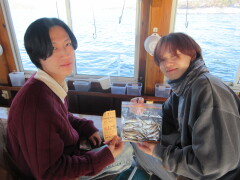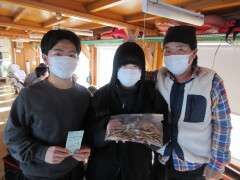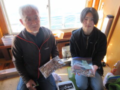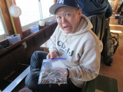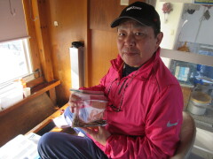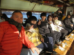 ドーム船内は温かくしています 今日は、曇ってせいか、午前中は順調に釣れていました 午後は少し渋めですが、それでも群れも順調に来ていました