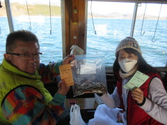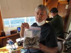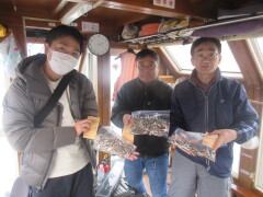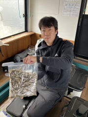 なかなか、厳しい時間がありました でも、なんとか、みなさん頑張ってくれたので 今日も、釣れました。 どの場所でも釣れるわけではないので、群れ探しが大変だったようです