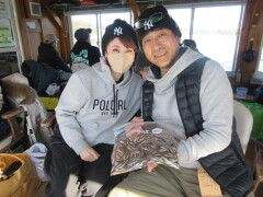 ・寒い日が続いていますので暖かい服装でお越しくださいませ ・冬季期間中は冬用タイヤかタイヤチェーンは必須です ・当日天候状況により安全を最優先し朝出船できない場合や、出船できても早上がりとなる場合もありますのでご理解をお願い致します 2025年 1/11 天候⇒晴れ 風⇒北西 やや強い 気温⇒-11~3 水温⇒2.3~3 数⇒12〜186匹 ポイント⇒長池 水深⇒12m 仕掛け⇒推奨0.5〜1.5号 サイズ⇒5〜11p ・二日間の強風の影響なのか10.00ぐらいまでは群れが入っても釣れない状況で厳しい時間が続き、弱い北西風が吹き始めてから群れの入りが頻繁になりました。ただ通過が早く数が伸びることはなく終了しました。 |