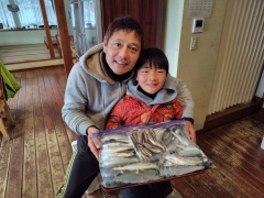 青梅市 山川璃人くん 五味田啓くん ワカサギお父さんと約400匹 棚29m底(午後◎)