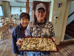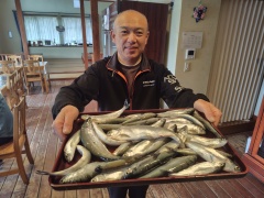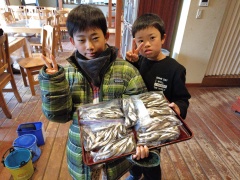 ワカサギもポイントで差が出てしまいましたが、トップは親子二組で約400匹の釣果でした。午前中はポツポツで午後から良くなったそうです。