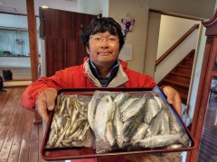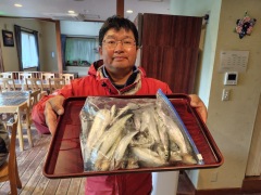 ワカサギは強風でポイントが定まらず釣り難かったですが、トップの方が435匹(13時上がり)の釣果でした。底よりも中層が良かったそうです。