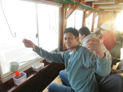なかなか、厳しい時間がありました でも、なんとか、みなさん頑張ってくれたので 今日も、釣れました。 どの場所でも釣れるわけではないので、群れ探しが大変だったようです