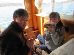 ドーム船は、元旦の富士山を見ながらできましたね 今日は、群れが来てくれれば良いけど、来ない時間もあって