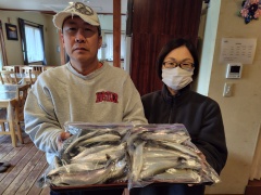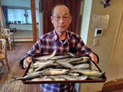 富士河口湖町の梶原さんも、産屋が崎付近の8〜9mラインで312匹!というとても立派な釣果を報告してくれました。 群れは小さいが、かたまっている群れに出会うと連発する・・・とのお話でした。 ご立派でした〜!