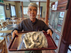 ワカサギもポイントで差が出てしまいましたが、トップは親子二組で約400匹の釣果でした。午前中はポツポツで午後から良くなったそうです。