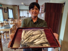 青梅市 山川璃人くん 五味田啓くん ワカサギお父さんと約400匹 棚29m底(午後◎)