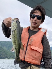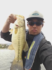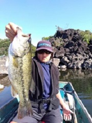 本日のトップ賞は、北区の中学生、荒木律君でした。 風裏となる畳岩方面へ移動し、その1mラインで45cm!!というビッグバスを見事にキャッチ!してくれました。 ビッグベイトに食って来た〜!との事。 果敢に攻めましたネ〜! お見事でした〜!!