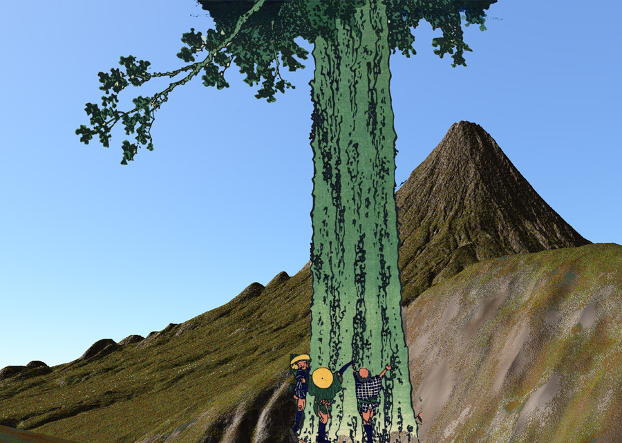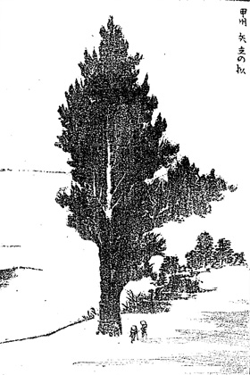 そう、木の皮の表面に見えたのです。そして、「甲州三島越」を改めて見ると大きな木が描かれている。「まさか…?」