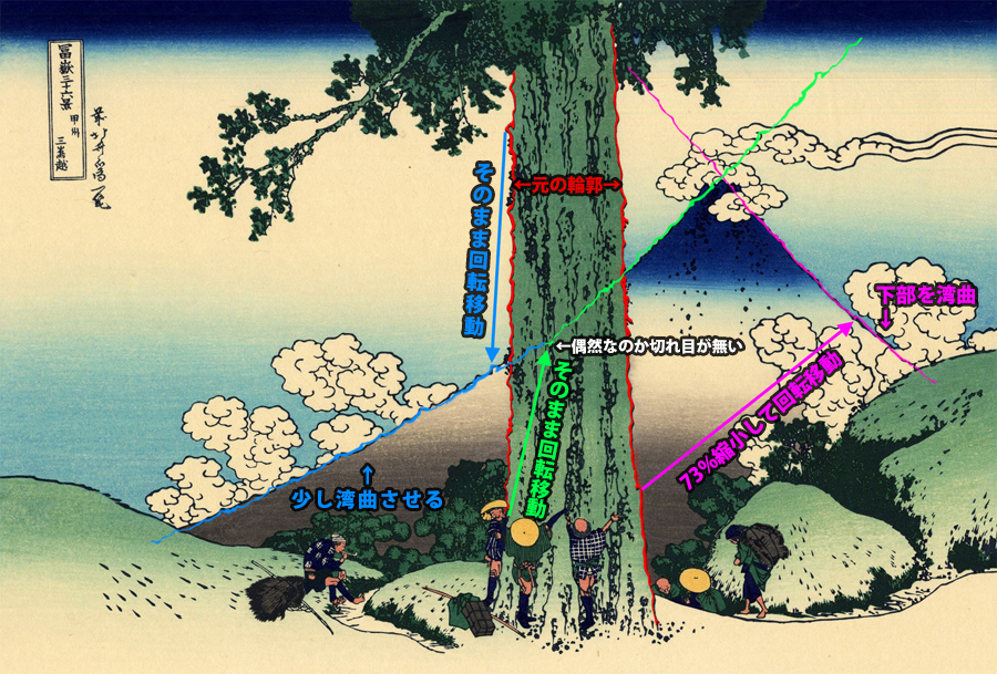 なんと、一致しているように感じます。そこで更に良く分かるように画を加工して検証していきます。 |