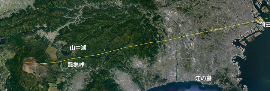 それでは、「甲州三島越」の富士山の稜線の形状は何でしょうか? 私は「甲州三島越」の富士山の稜線の形状を1年近く見続けました。そして閃いたのです。 |